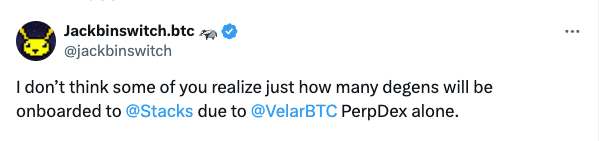 This week's highlight comes from @jackbinswitch, commenting on Velar's impact on the Stacks ecosystem: